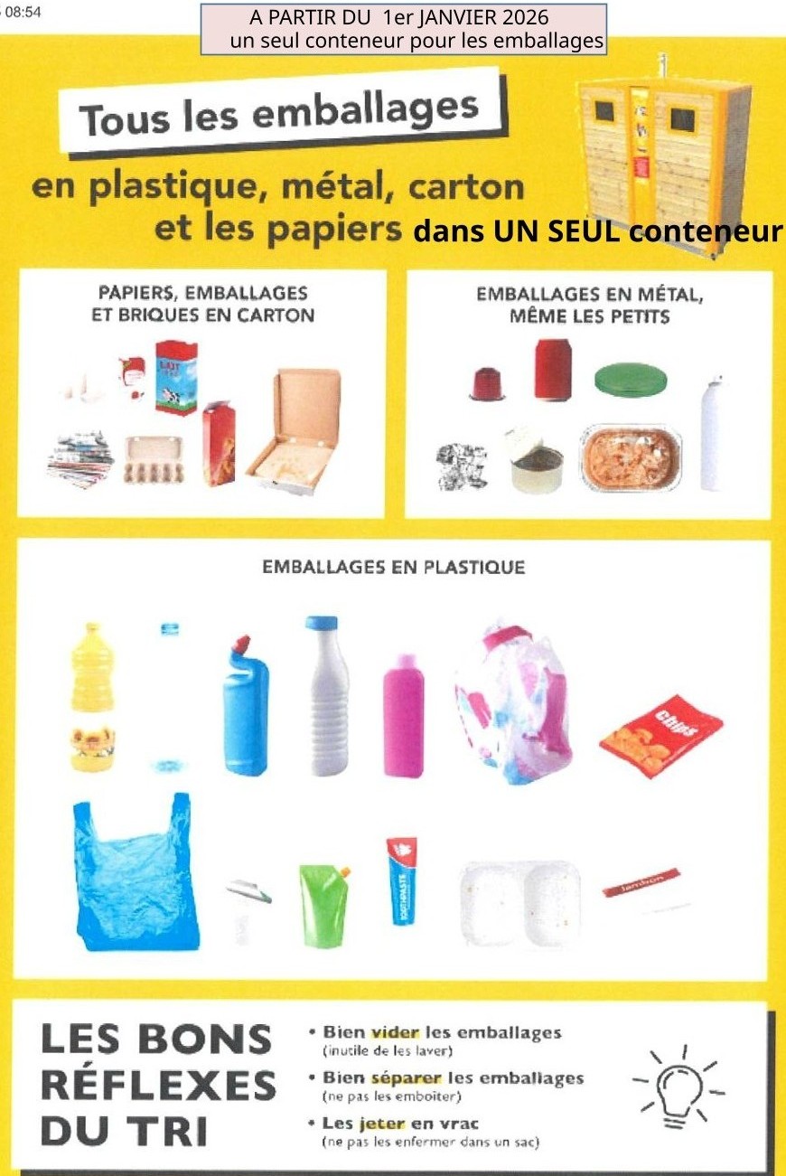 Tous les emballages ménagers et papiers devront être déposés dans une seule et même colonne.